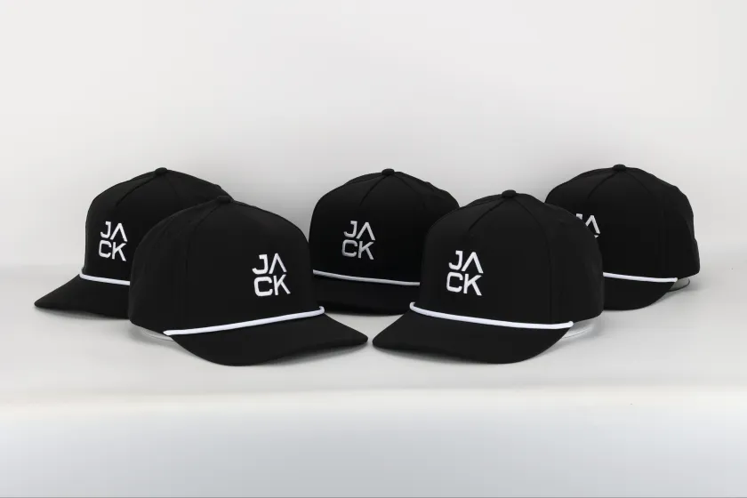 Stay sharp on and off the course with the JACK Black Golf Hat, designed for golfers who demand both style and performance. Crafted for those who want to make a statement without saying a word, this sleek black snapback features bold JACK embroidery in crisp white — a clean, modern look that stands out.